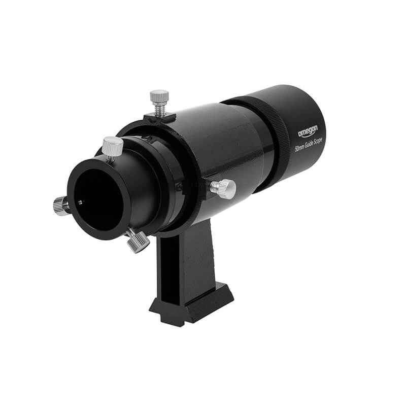 The Omegon Guiderscope features an achromatic optical design with a 50mm lens and a focal length of 175-180mm. This combination delivers a sufficiently bright image to capture the guide stars needed for accurate autoguiding during long exposures.