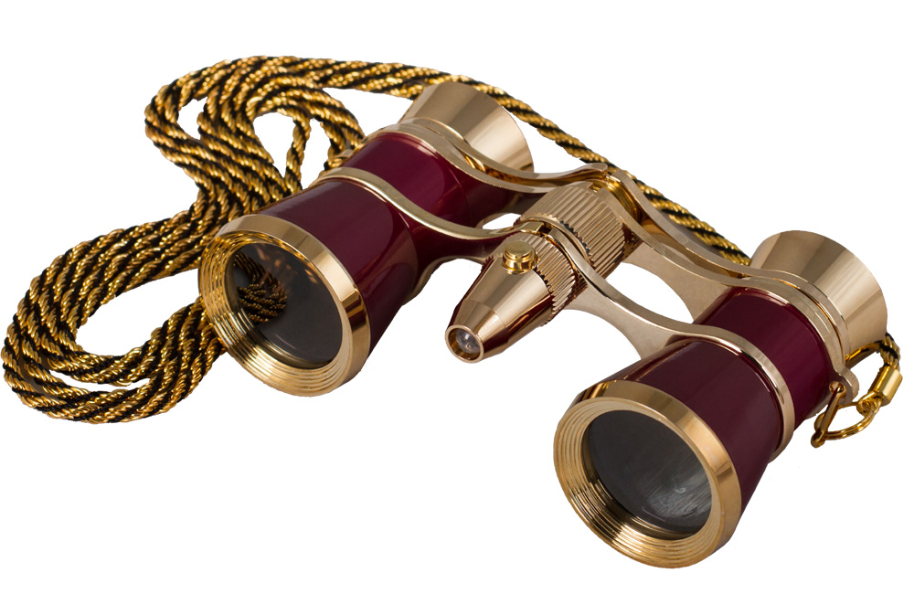 Opera glasses Levenhuk Broadway 325F (red, with a LED lamp and a chain)