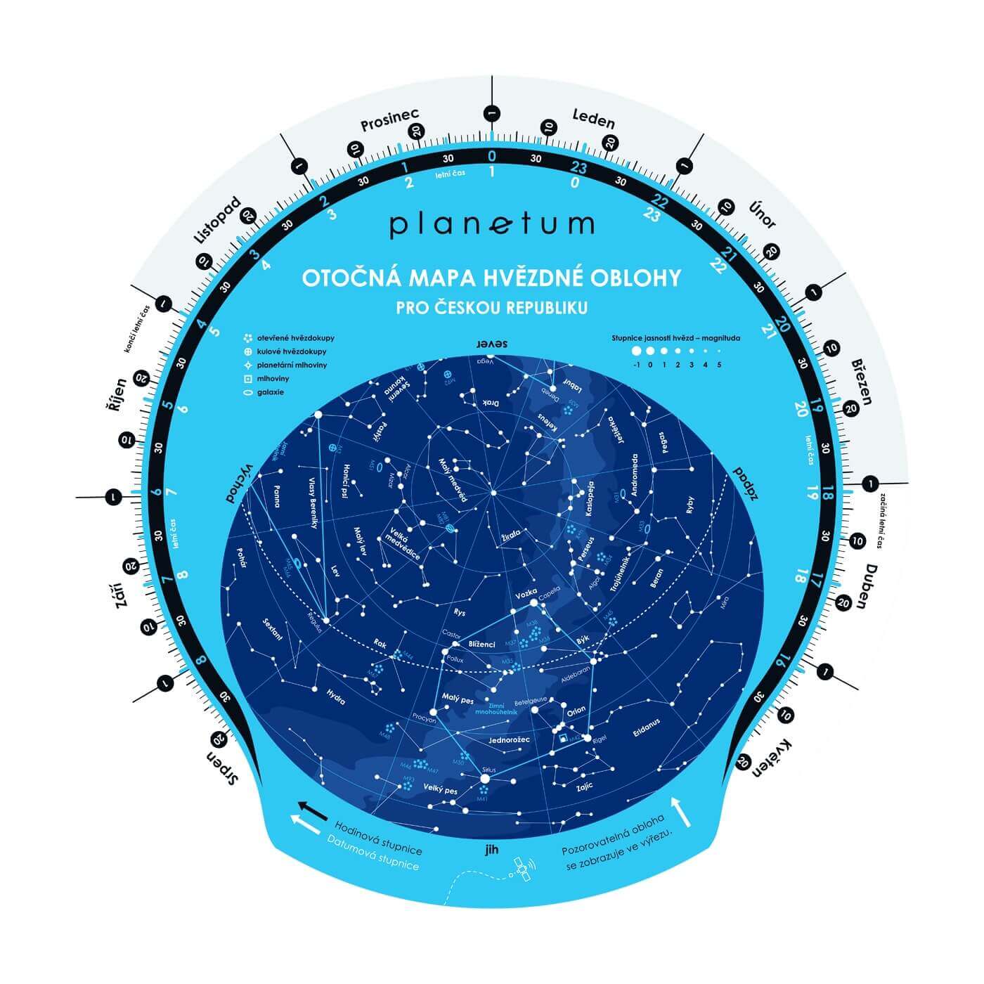Základní otočná mapa hvězdné oblohy